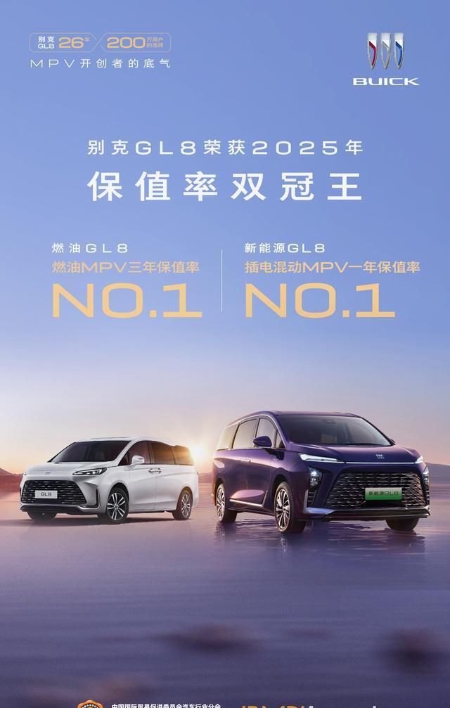 燃油车时代,别克MPV开创与定义细分市场,GL8连续20多年夺得MPV市场销冠,成为当之无愧的国民MPV;智电时代,别克MPV紧扣市场需求,GL8在产品力和品质上持续进阶,新能源GL8和燃油版GL8在终端市场火力全开,牢牢占据MPV王者地位。作为最懂国人的MPV车系,GL8家族除了销量屡攀新高,口碑不断发酵外,保值率也常年居高不下,是MPV用户深度信赖的不二之选。据中国国际贸易促进委员会和蓝本价联合发布的2025年度《中国汽车保值率排行榜》显示中岩投资,GL8家族凭借深厚的品质积淀、优异的市场表现与卓越的用户口碑,一举斩获保值率双冠:新能源GL8以67.78%的保值率,荣获国产插电混动MPV一年保值率领先;GL8燃油车型则以53.6%的保值率,连续五年蝉联国产MPV三年保值率领先。