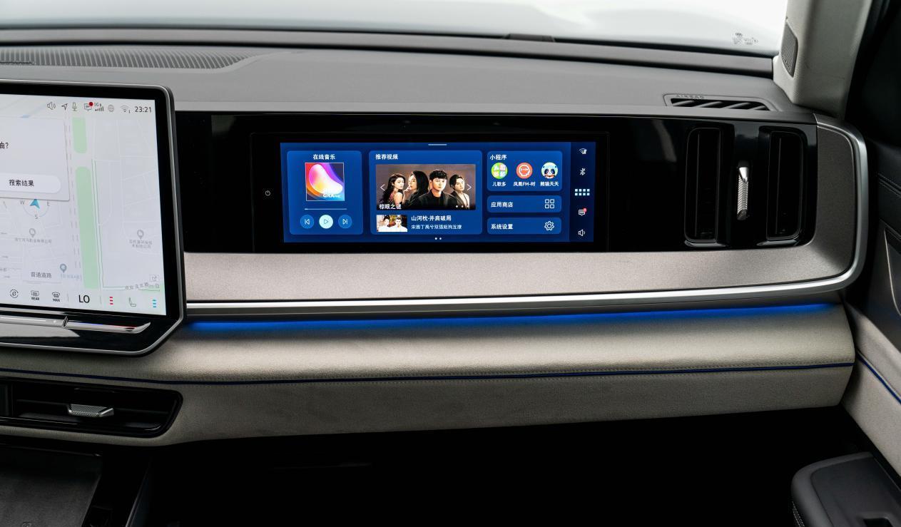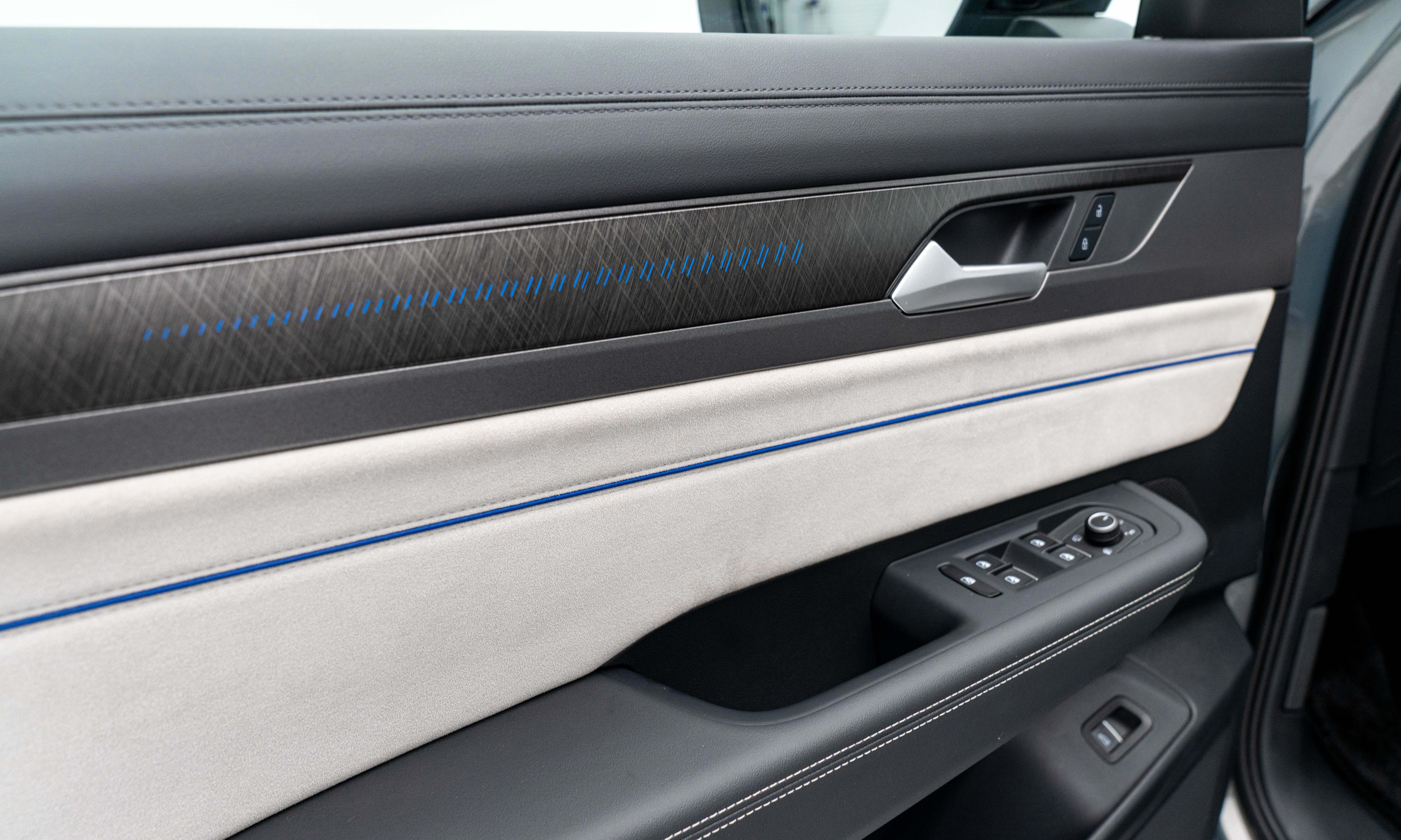 内饰门板IMD透光饰条和多彩氛围灯的加入,为车内增添了一份温馨的氛围。