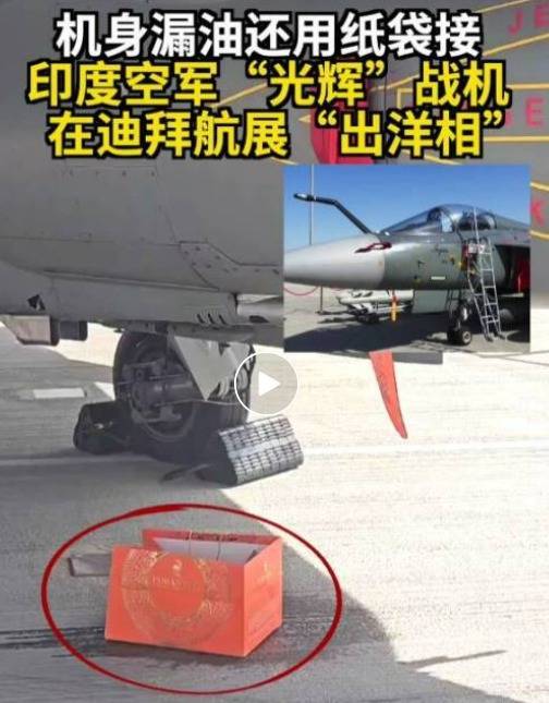 此前据央视新闻消息,11月17日,阿联酋迪拜航展正式开幕,现场观众拍摄并发布的视频显示,一架参展的印度空军“光辉”战机发生机身漏油,印方地勤人员不得不使用临时找到的纸袋去接油,场面十分尴尬。