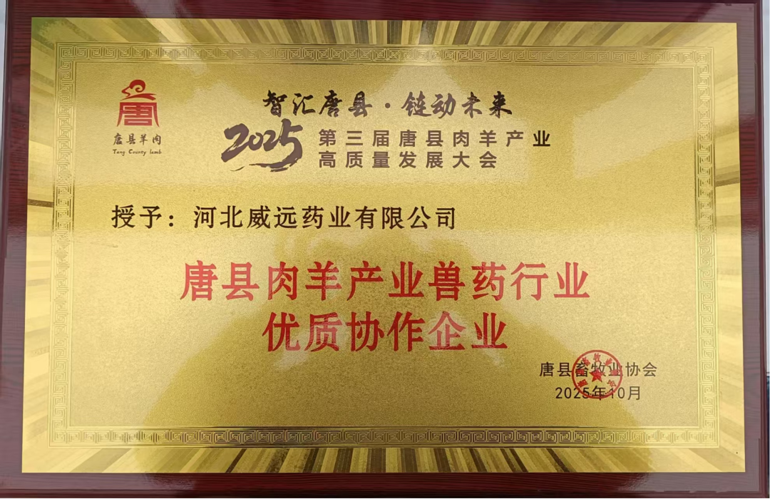 唐县作为全国舍饲肉羊养殖大县和华北地区最大的羊肉生产供应基地,肉羊产业基础雄厚,常年存栏400万只、出栏800多万只,已形成从“养殖—屠宰—加工—有机肥—销售”为一体的全产业链发展格局。开幕式上,唐县畜牧业协会授予威远药业“唐县肉羊产业兽药行业优质协作企业”称号,充分体现了公司在当地肉羊产业动物保健领域的重要贡献。