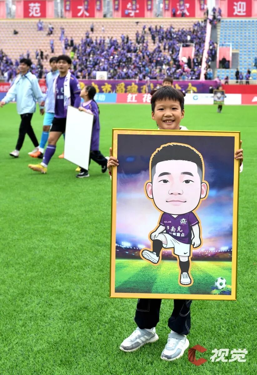 11月15日,“川超”比赛结束后,南充丝绸源点队的一名小球迷举着父亲的卡通肖像,为球队的获胜喝彩 图据川观新闻