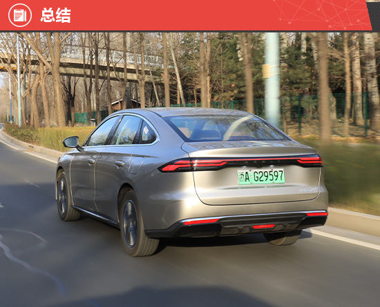 评测车搭载新一代雷神AI电混2.0系统,由1.5L发动机与前置单电机组成。其中,发动机最大功率82kW、最大扭矩136N·m;电动机总功率120kW、总扭矩210N·m,CLTC纯电续航里程为125km。实际体验中,得益于电动机的介入,车辆起步轻快,加速过程顺滑,即便是中后段提速也不会感到乏力。